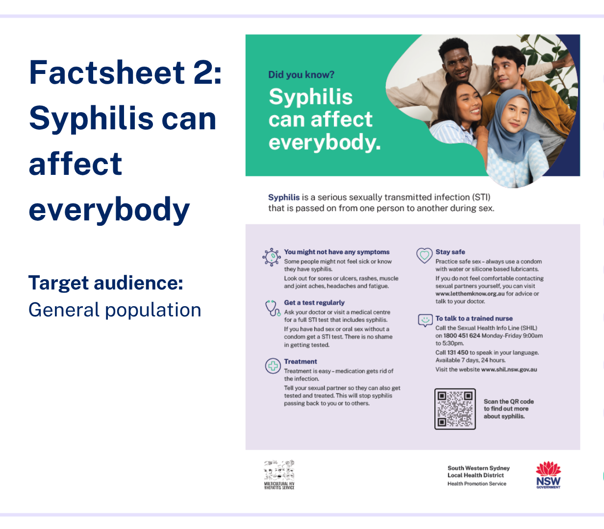 The Australian Government’s Beforeplay campaign includes videos and factsheets that encourage people to test for sexually transmissible infections, use protection and practise safe sex. The videos are in English with translated subtitles and transcripts in Arabic, Simplified Chinese, Korean, Thai and Vietnamese. Factsheets are available in Arabic, Simplified Chinese, Traditional Chinese, Korean, Punjabi, Thai and Vietnamese.